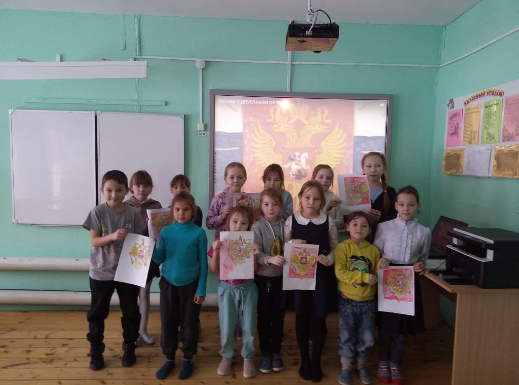 В рамках историко-патриотического воспитания для учащихся 2 и 4 классов Ахунова Раиля Аснафовна 30 ноября провела урок «Из истории Государственного герба», а также учащиеся посмотрели «Сказку о двуглавом орле».