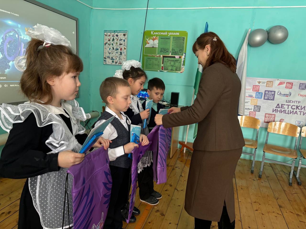 Каждому ученику были торжественно вручены значки, удостоверение и шопперы для обуви с символикой принадлежности к содружеству "Орлята России". Это событие стало не только важным этапом в жизни ребят, но и настоящим праздником для всей школы!