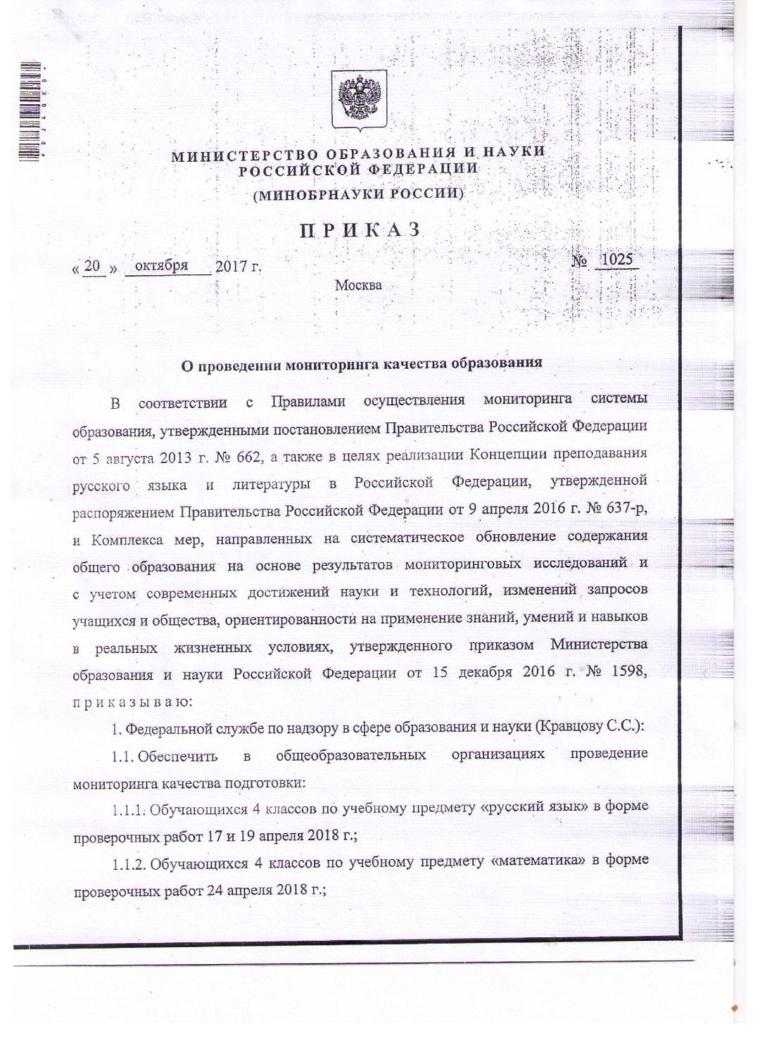 Приказ о проведение мониторинга качества образования