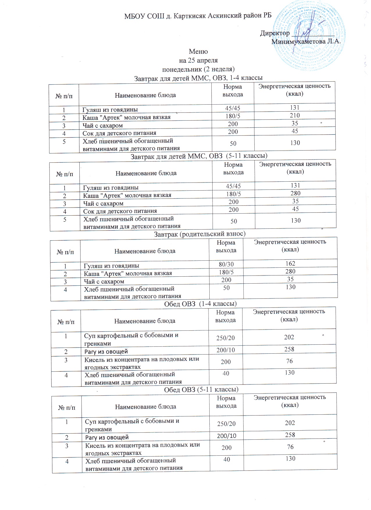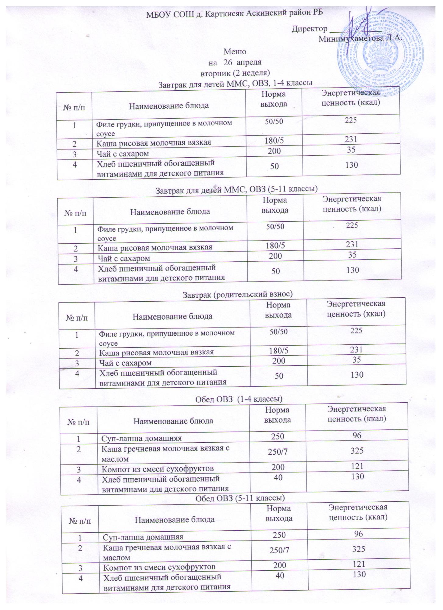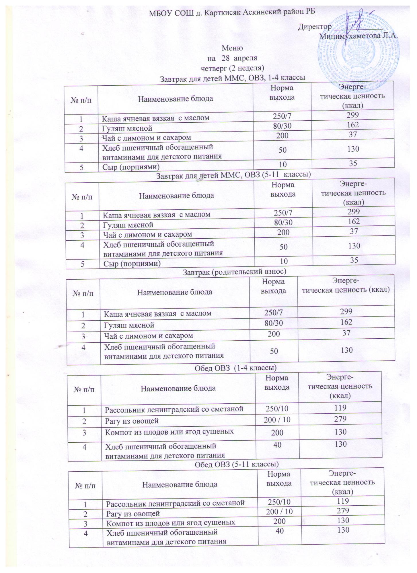 (Завтрак ММС, ОВЗ, 1-4 классы)