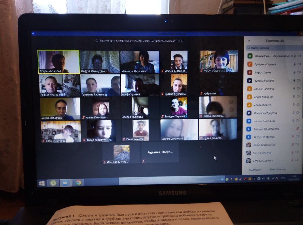 29.05.2020 года в нашей школе прошел праздник День Последнего звонка для выпускников в онлайн режиме. На платформе zoom директор школы Минимухаметова Л.А. поздравила выпускников школы, также к поздравлениям присоединились завучи школы и классные руководители. От имени родителей выступила Гареева М.Г... В конце прозвенел последний звонок...